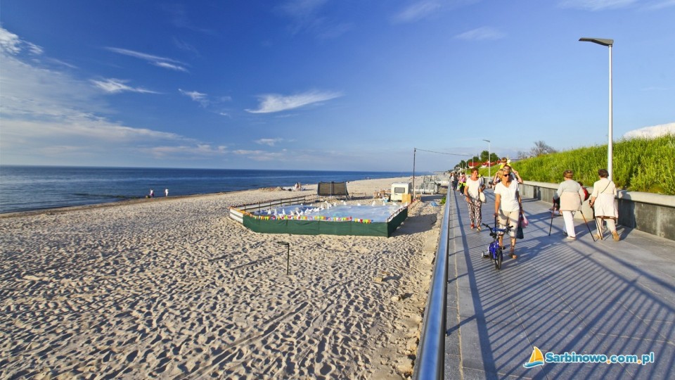 Co ciekawego czeka na Turystów w Sarbinowie? PLAŻAPlaża w Sarbinowie zachęca do letnich, lecz nie tylko, kąpieli. Jest piaszczysta, czysta i bardzo szeroka. W sezonie na terenie plaży możemy skorzystać z oferty braów i restauracji. Przy plaży zbudowana jest kamienna zapora. Po jej drugiej stronie stworzona została promenada, którą można pokojnie przechadzać się i napajać widokiem morza, zachodów słońca, szumem fal.