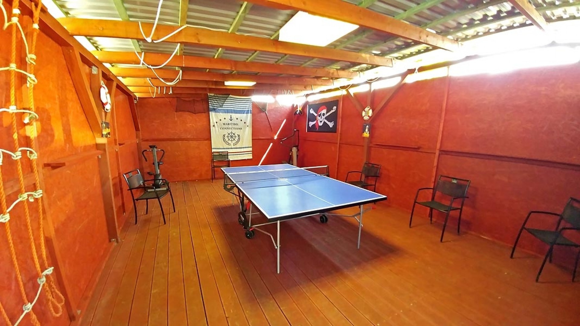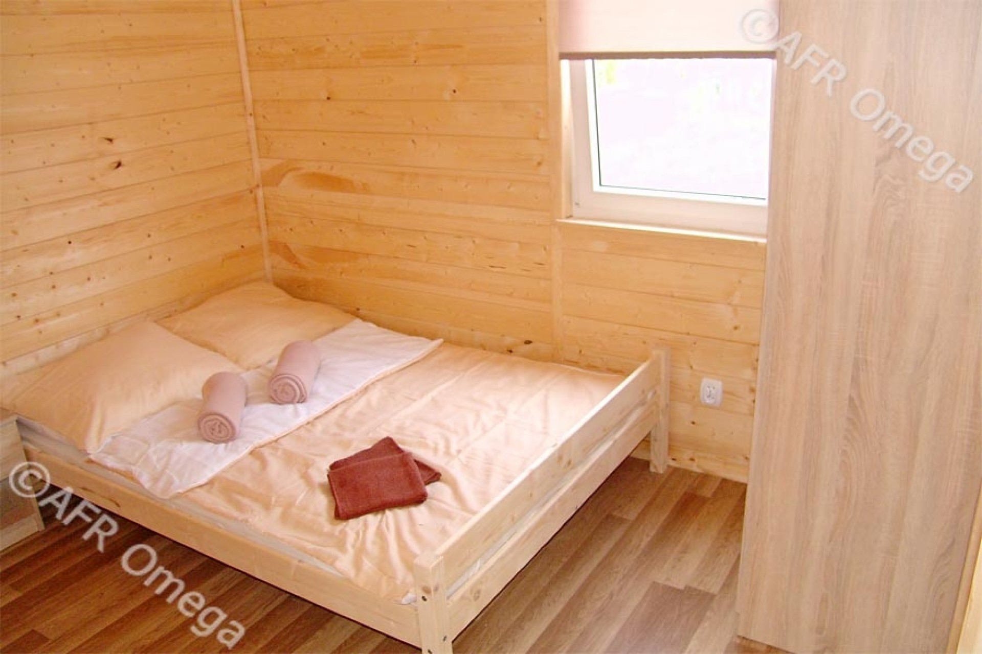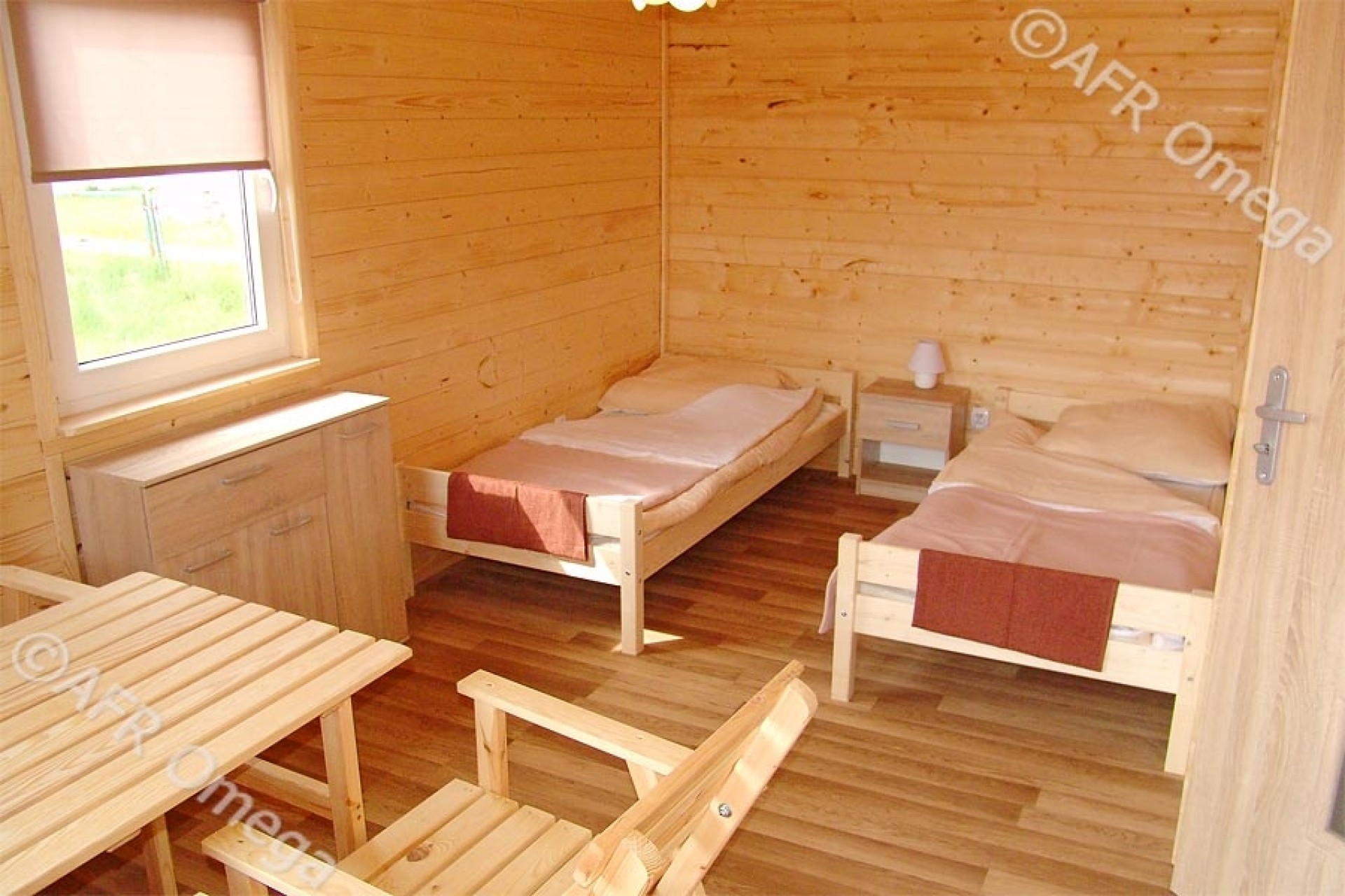 - 7 domków z trzema łóżkami (jeden pokój łóżko podwójne, drugi pokój 2 łóżka pojedyncze),